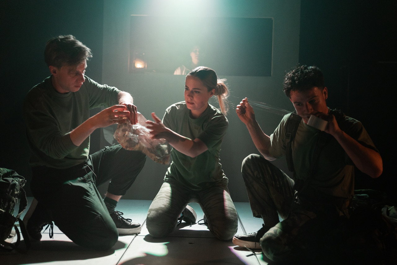Zajímavé je, že materiál ze života mladé herečky, která v inscenaci hraje jednu z rekrutů Aktivních záloh je i jedním ze zdrojů výsledného textu.