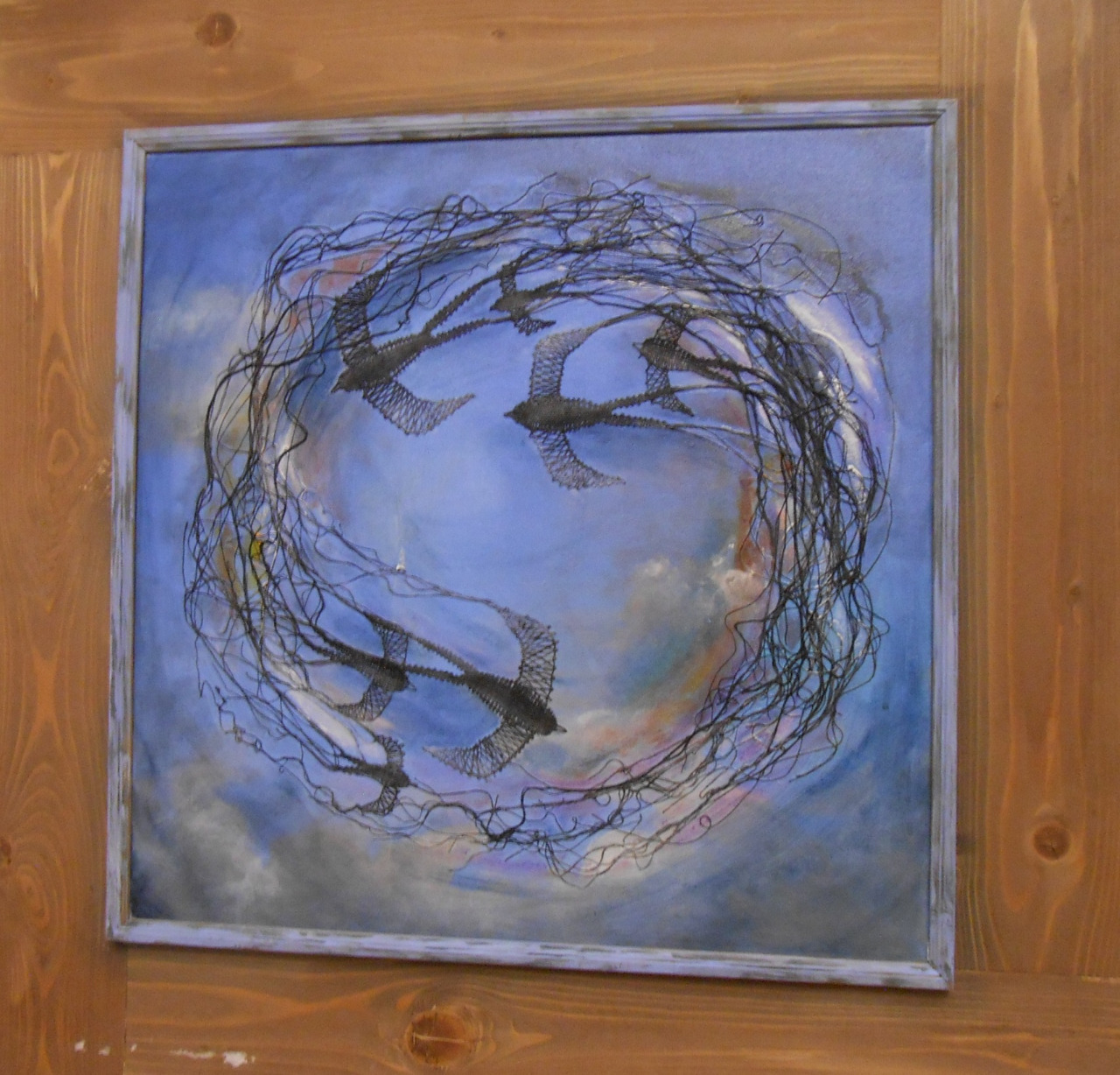Druhou charakteristikou tvorby Emílie Hodasové, je cit pro barevnou kompozici. Není bez nápadu, není bezvýrazná, je poutavá, ale není přehnaně křiklavá. Je vyvážená. A působí příjemně folklórně, aniž by nutně „opisovala“. Autorka si zjevně užívá ohlasů přírody, jejích motivů, ať už reálně, nebo symbolicky. V každém obraze je zakomponován nějaký detail, jako určité poselství divákům. Vždy je výsledek hravý, probouzející dobrou mysl i v dnešní době, minimálně po dobu setkávání s obrazy. Dozvuk nás pak provází ještě i po odchodu z výstavy. A optimismu z hravé krásy je nám všem dnes třeba víc, než kdykoli jindy…