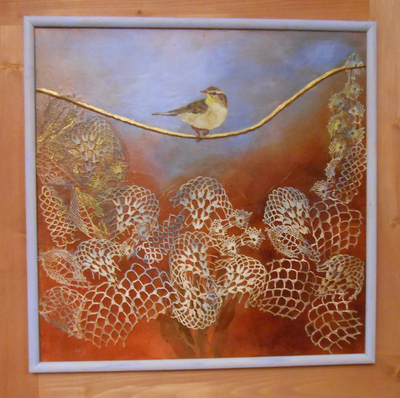 „Zvláštní kombinace malby a paličkované krajky představuje na své autorské výstavě