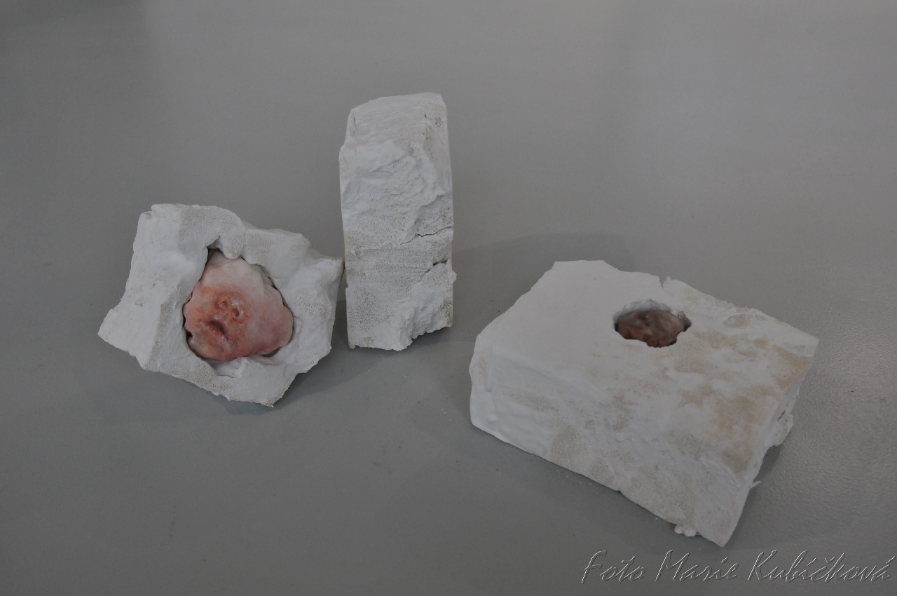 Výtvory umělkyně s pseudonymem Mai pocházejí z předchozího roku. V cyklu pracuje prioritně s hmotou, což ovšem nevylučuje souběžné použití fotografií, které vkládá do sádrových odlitků – obalů, čímž chce naznačit, odvěkou touhu člověka opustit schránku, do níž je po narození bez vlastního přičinění vřazen, vložen. Schránka mu vnucená ho poutá, svazuje, svírá a omezuje v možnosti rozletu. Touží se tedy ze schránky vymanit, opustit ji, vyvinout se jiným směrem než mu byl předurčen. Proto sám, z vlastní vůle, na svou odpovědnost, bez ohledu na rizika s tím spojená - svou schránku opouští.