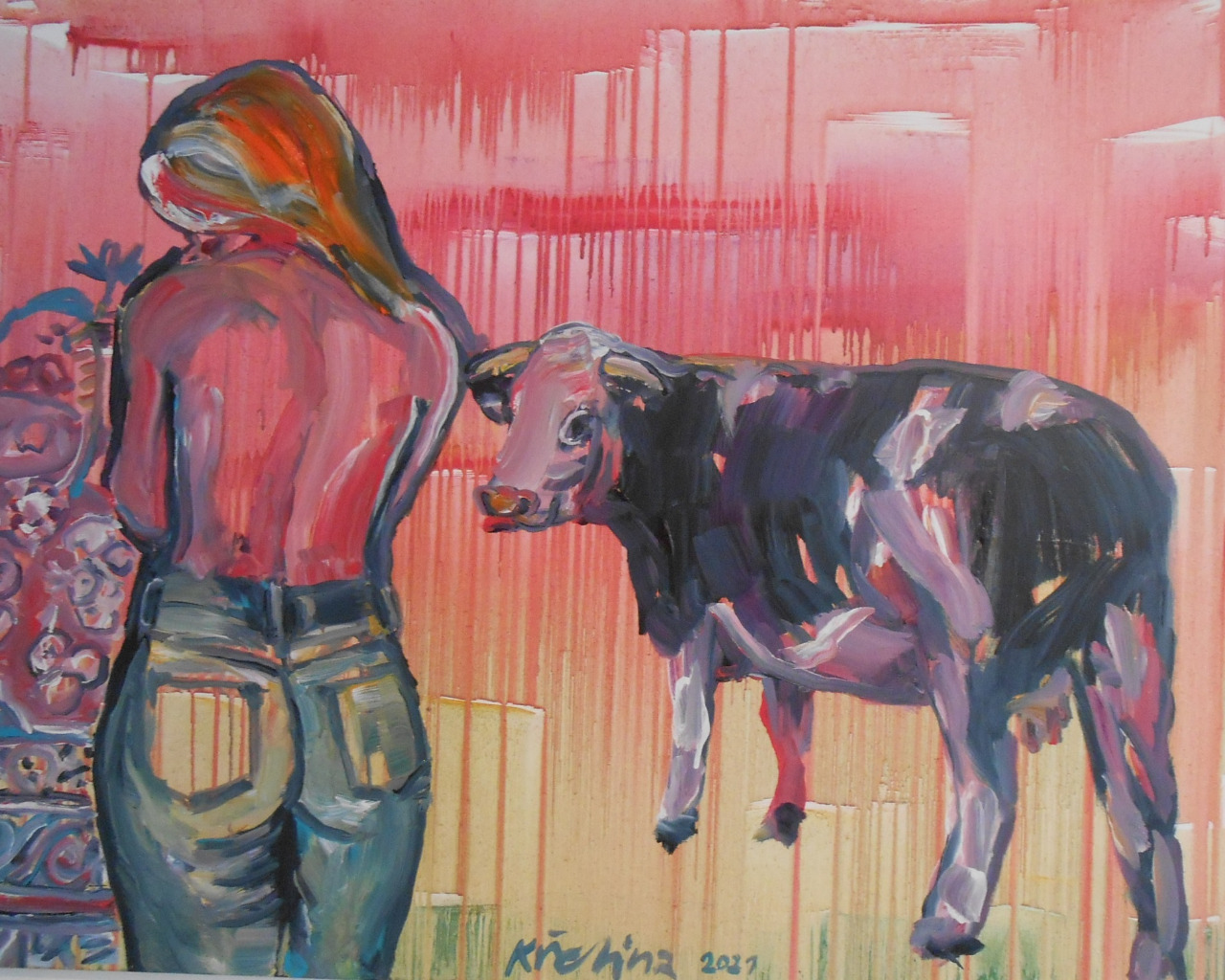 Na výstavě autor předkládá výběr expresivních maleb převážně figurálních motivů. Mnohdy abstraktního přírodního detailu i krajinného celku. Kresebné linie uplatňuje v malbě kaligrafickým způsobem. Divák tedy musí příběhy obrazů často nejprve dekódovat, najít v nich odpovědi na otázky, které autora zajímají a které chce ve své tvorbě vyjádřit.