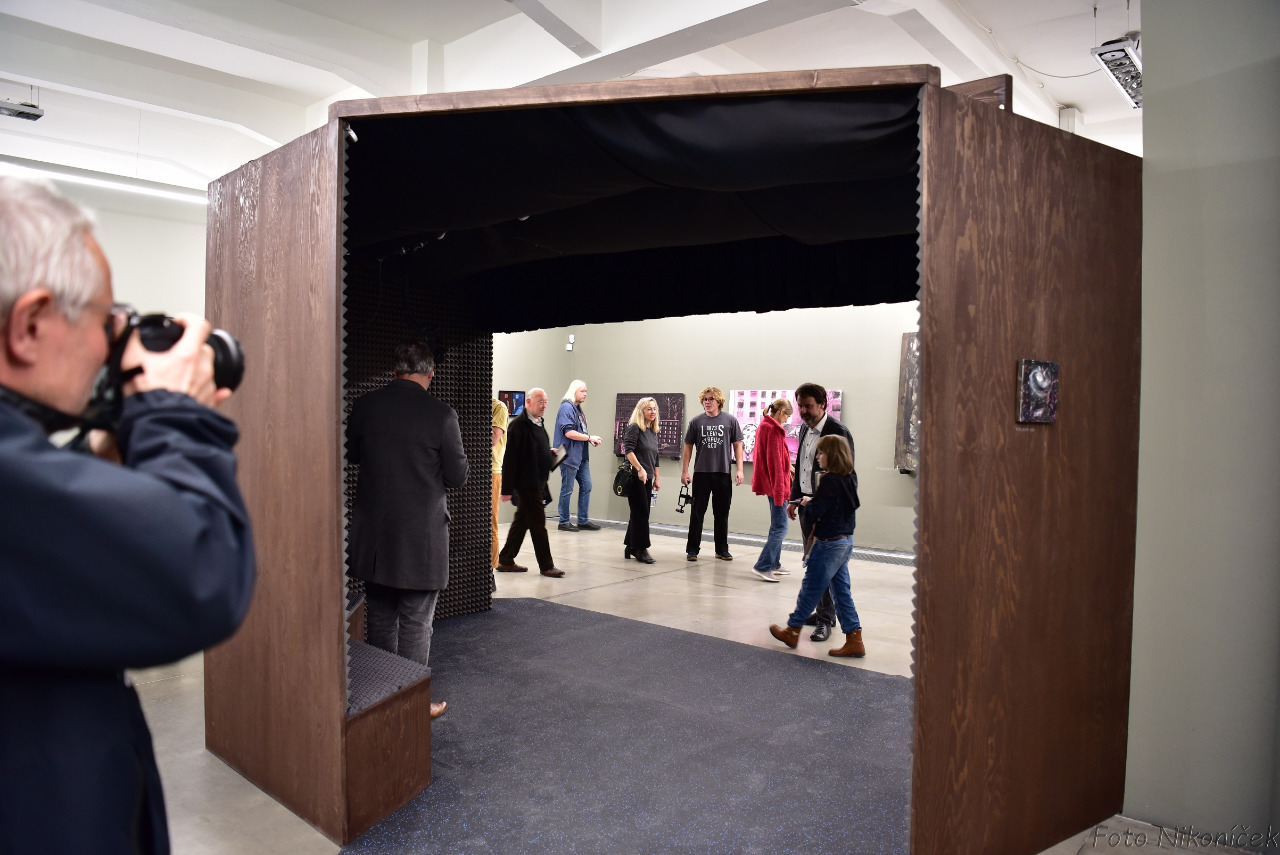 Anebo se dá dospět až k zadní stěně, kterou přímo pro potřeby výstavy, tedy nevratně, pomaloval Josef Bolf svými výjevy, mezi něž jsou vložena plátna Josefa Váchala. Vzniká tím jakýsi pomyslný oltář umu obou tvůrců.