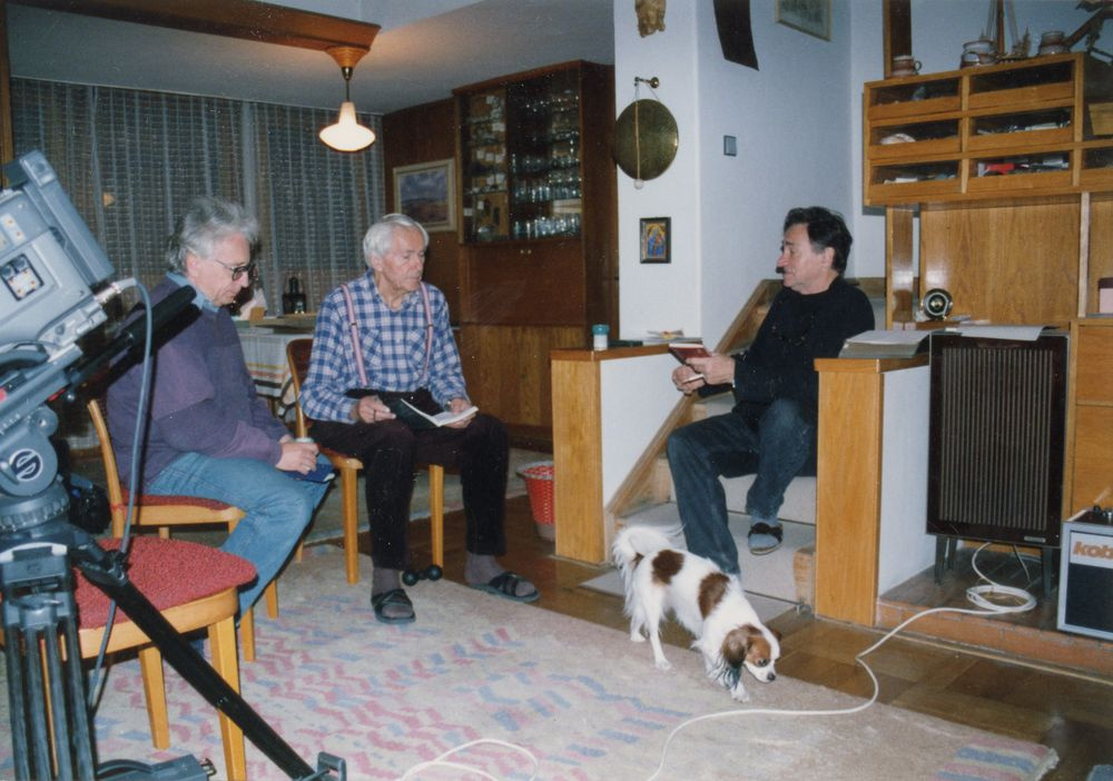Natáčení seriálu Svět očima Hanzelky a Zikmunda s režisérem V. Filipem (2. 10. 1998)