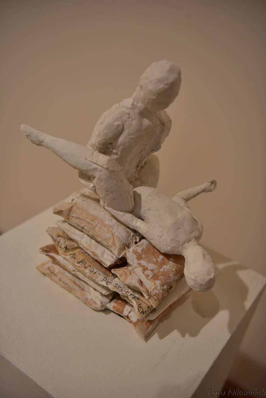 (Přítomnost minulosti, 2021, sádra, 20x20x40 cm)