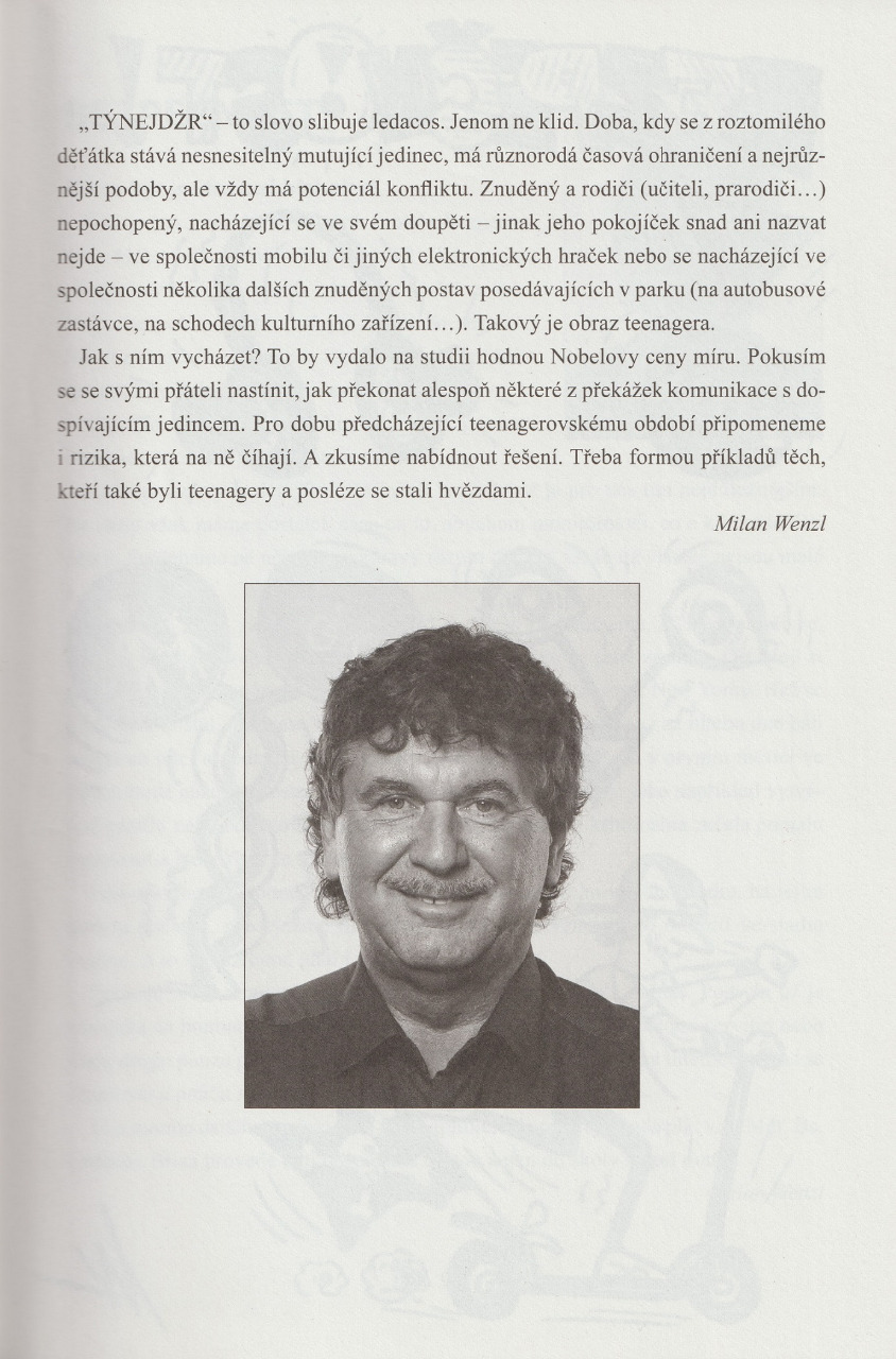 Autor knihy Milan Wenzl na to šel zcela opačně. Sám si prožil, jako každý z nás svoji pubertu, svá léta teenagera a sám také měl – jako každý řádný rodič – co do činění se svým potomstvem, které dosáhlo onoho teenagerského věku. Dvojí zkušenost. To už je materiál k vyjádření, posouzení a hlavně zkušenost. Teenager se totiž generace od generace v zásadě neliší. Má ve své době vždy jen jiné možnosti, podmínky, vlivy a lákadla. Lze tedy abstrahovat jisté principy platné obecně. Najít je ve vlastních vzpomínkách na reakce tehdejších dospěláků kolem a vyvarovat se chyb, které silně prožívali oni dospělci sami jako teenagerové, v konání a prosazování názorů od dospěláků, kteří byli tehdy kolem nich. Vyvarovat se a neopakovat ty chyby. Možná dělat zase jiné, ale ty největší eliminovat. Chce to upřímnost k sobě samým a přiznat si i nesmysly a nesprávnosti, které tehdy sami prosazovali.