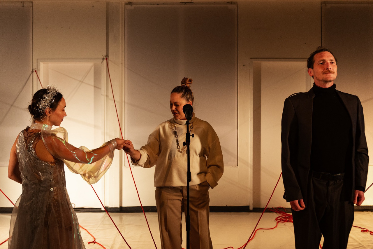 Hrají: Anna Trojanová j.h. (Ondina), Hana Mathauserová (kamarádky, Hansova matka, Moderáto, Tarolog) Stela Chmelová (Sousedka, Berta, Konspirolog) a Samuel Neduha (Hans)