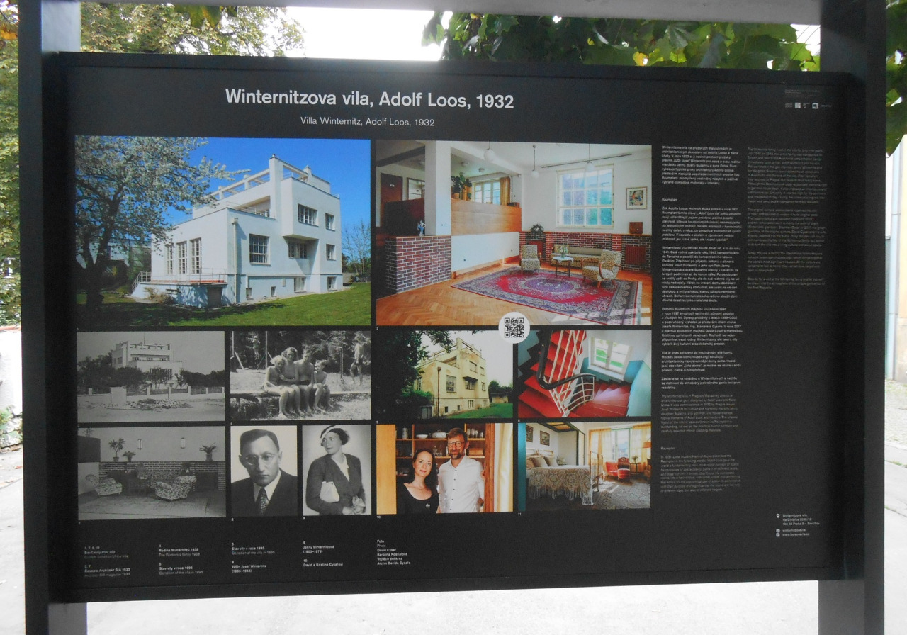 Úvodní panel je věnován významné smíchovské Vile Winternitz. Její historii, pohnutým osudům rodiny Wintrenitzů a architektům téhle historicky cenné vily, Adolfu Loosovi a Karlu Lhotovi.