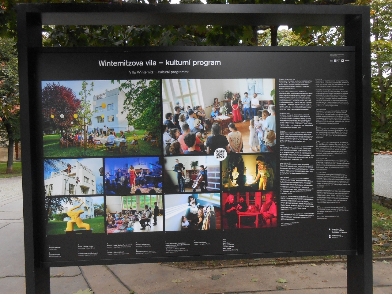 Další úvodní panel představuje programovou náplň a další aktivity spjaté s Vilou Winternitz, která je dnes - díky pochopení potomků rodiny Josefa Winternitze - aktivním společenským a kulturním centrem Smíchova.