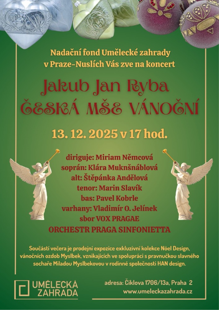 I když už je zima a v Zahradě to táhne od nedaleké Folimanky a jí protékajícího Botiče, pozvání do Umělecké zahrady lákalo. Lákalo na koncert z nejvánočnějších na Mši Vánoční, od Jana Jakuba Ryby. Ano, v dny vrcholícího adventu, se s Rybovkami roztrhl pytel, jak se říká. A je to tak dobře. Nic Vánočnějšího, nic češtějšího a nic lidovějšího nenavodí tu správnou atmosféru tak, jako tahle skvostná mše. Zájemce si v Praze nestačí vybrat kam dřív. My na www.www-kulturaok-eu.cz jsme ovšem volili – alespoň pro nás – milou novinku - koncertní provedení Rybovky v Umělecké zahradě, o níž jsme psali v létě a která nás právě v létě nadchla. Jak to tam tedy vypadá v zimě a jak bude uspořádána ta naše oblíbená a nesčetněkrát slyšená Rybovka konaná tentokrát právě tam…?