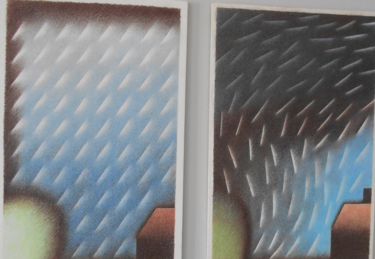 déšť dopadající na krajinu,