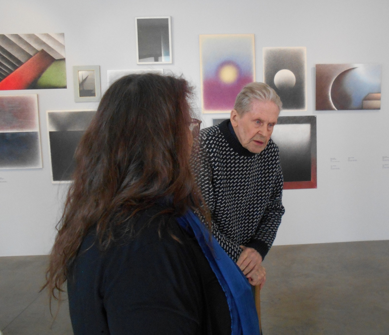 Václav Sokol se i přes svůj vysoký věk zúčastnil zahájení svojí výstavy a i přesto, že zjevně pozitivně kvitoval zasvěcenou a zajímavou komentovanou prohlídku vedenu kurátorkou, neodolal a sám aktivně do komentáře Martiny Vítkové vstupoval s vysloveně osobními pamětnickými doplňky. Tak třeba po důležité informaci kurátorky, že autor tvoří zejména pastelem a uhlem, pohotově doplnil proč. Prý proto, že obě media jsou lepší pro manipulaci. S jejich pomocí se mu totiž daří na obrazech dosahovat těch tak typických pozvolných přechodů, které všem jeho obrazům dodávají specifický, vizuálně uklidňující a příjemný meditativní efekt.