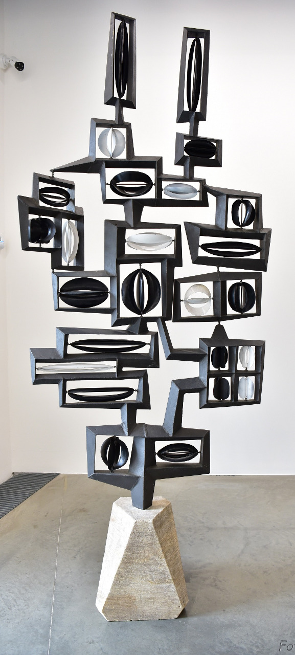 se přihlásil k novým sochařským tendencím na počátku šedesátých let několika abstraktními plastikami z ocelového plechu. Následně prozkoumal výrazové možnosti laminátu a postupně dospěl k invenčnímu propojení reality kamene opracovaného přírodními silami s průmyslovými kovovými fragmenty, zaujat výrazovou silou specifické hybridnosti – jako příklad esence tematizace vztahu technické modernosti vůči přírodě lze uvést plastiku Totem civilizace (1966–1968).