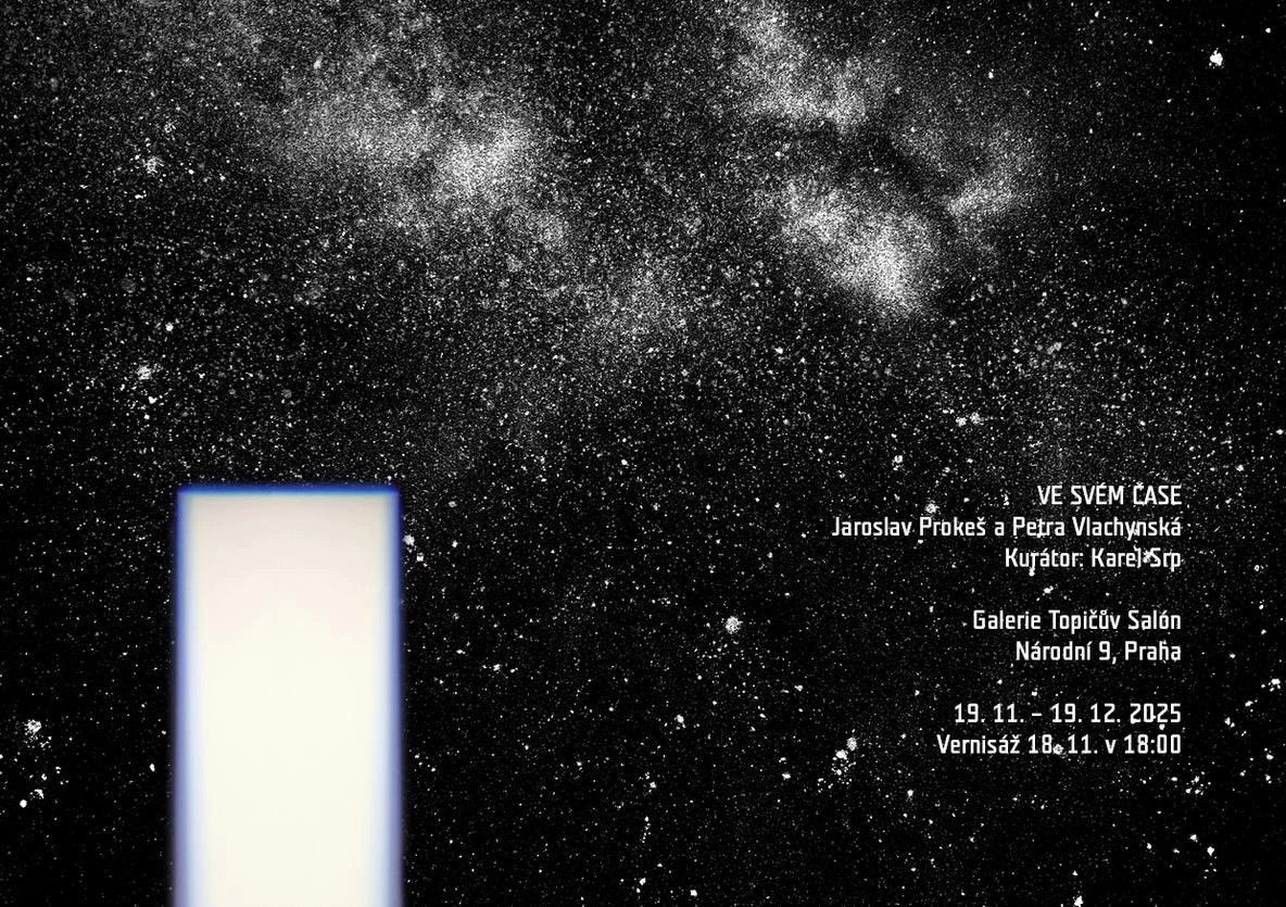 Autoři Jaroslav Prokeš a Petra Vlachynská v Galerii Topičův salon, rozvinuli pod kurátorským vedením Karla Srpa jedno společné téma. Téma času a možností jeho vnímání. Výstava s názvem „Ve svém čase“ tak do slovutných prostor Topičova salónu přináší instalace, objekty, videa i grafické práce. Vše z posledních let, v „jejich autorském čase“, kdy se oba umělci dotýkají proměnlivosti, trvání a fyzické přítomnosti času v materiálu i prostoru.