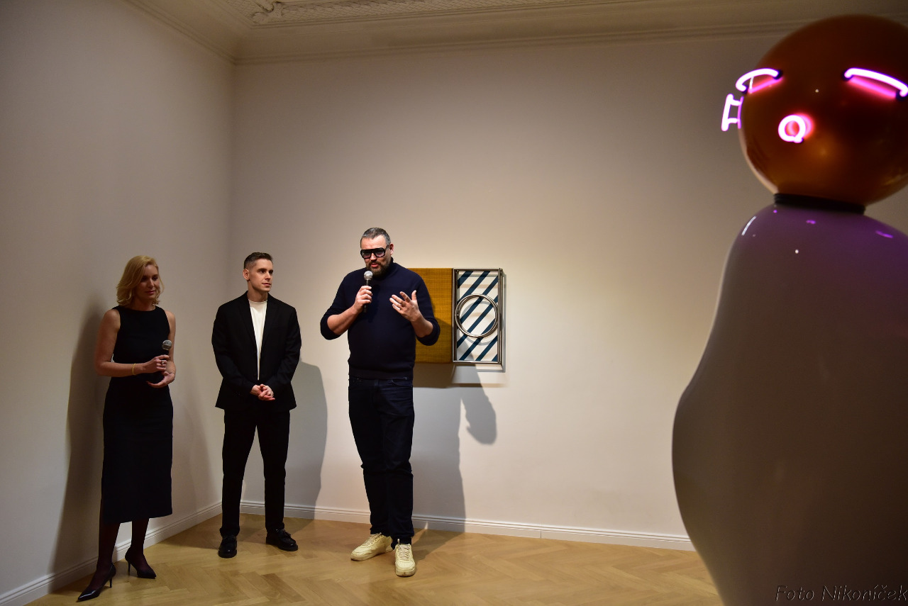 (Galeristka Nikola Korčáková, kurátor Michal Stolárik a autor Viktor Frešo)