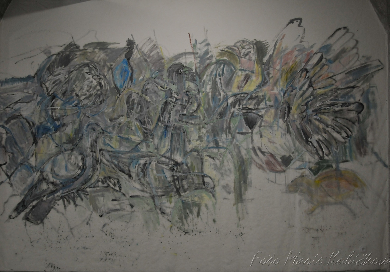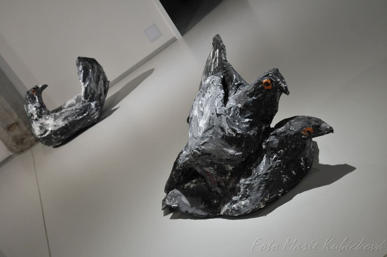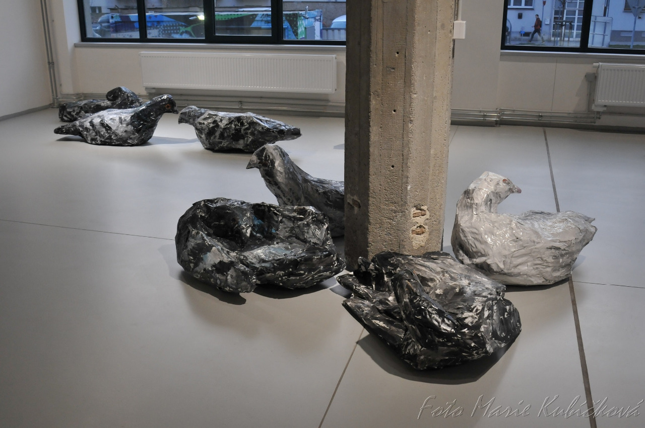 Tím pádem se mi, diváci–lidé ocitáme prostřednictvím výstavy mezi holubi, jako rovní s rovnými a můžeme tak zažít něco, co kurátorka výstavy Jana Písaříková, označuje jako ocitnutí se v „mezidruhové metamorfóze“.